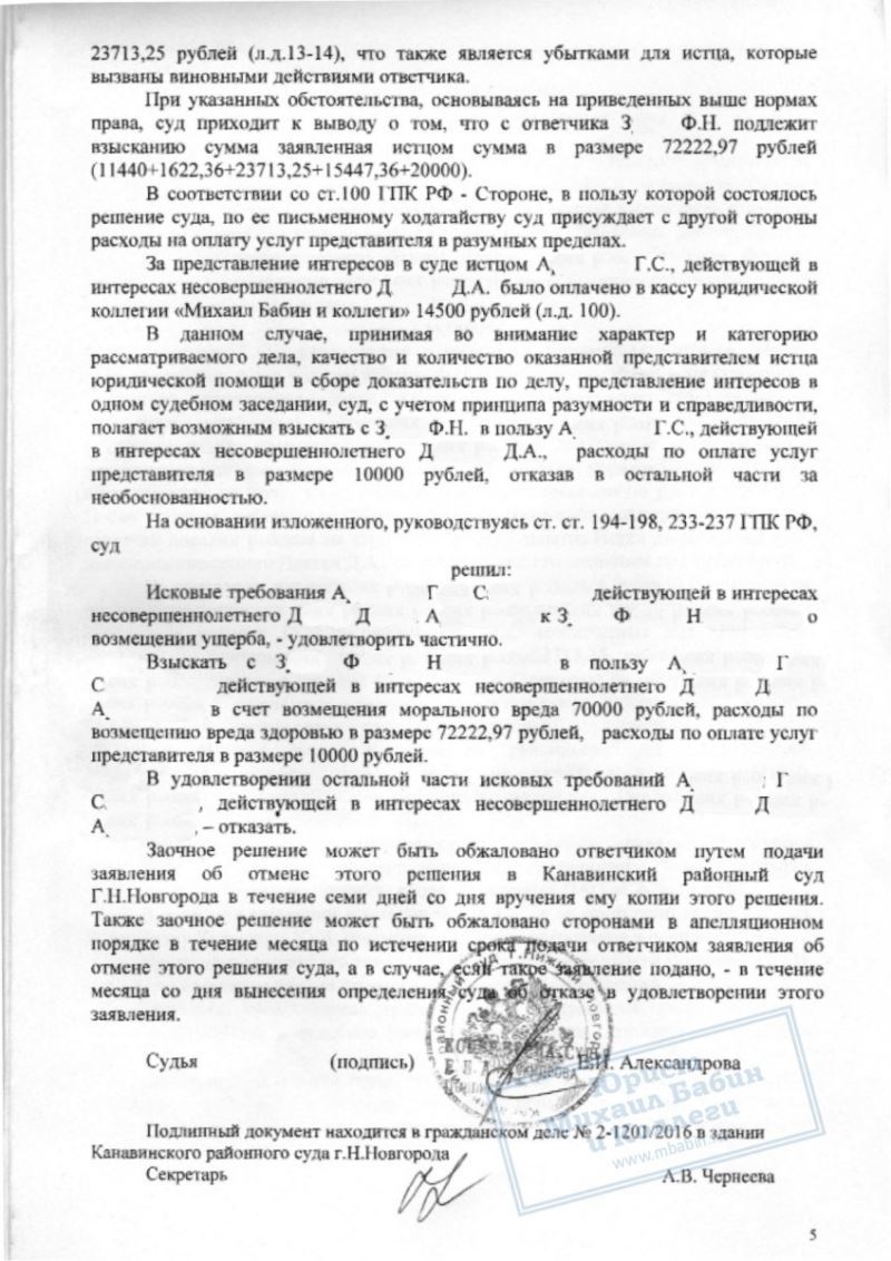 По итогам судебного заседания с преподавателя в пользу несовершеннолетнего Д. было взыскано 72 000 р. на оплату лечения, 70 000 на возмещение морального вреда, а также средства на оплату услуг представителя.